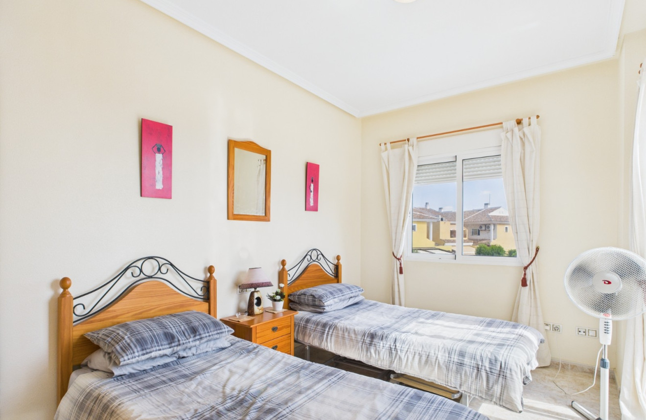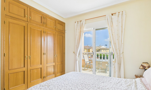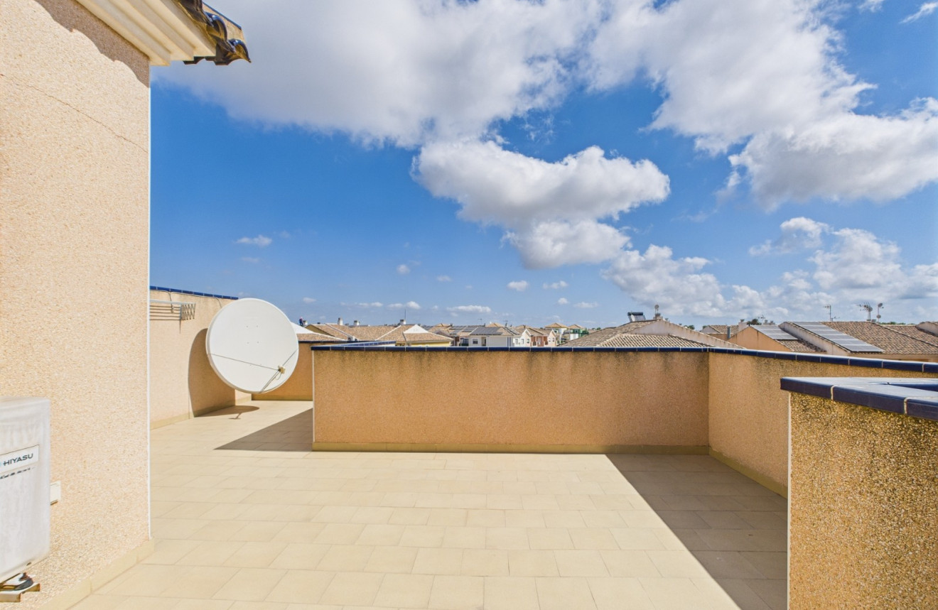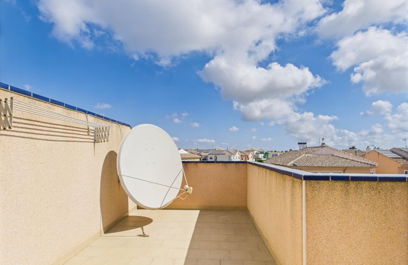 Cette charmante maison mitoyenne de 2 chambres et 2 salles de bains est située dans le quartier prisé d’Euro Roda à San Javier. Vendue entièrement meublée, elle offre un espace de vie lumineux et confortable avec la climatisation dans toutes les pièces, idéale pour y vivre toute l’année ou comme résidence de vacances. Elle dispose d’un solarium privé parfait pour se détendre au soleil, ainsi que d’un accès à une piscine commune bien entretenue. Une place de parking privée en option est également disponible pour plus de confort. Proche des commerces, restaurants et autres commodités locales, la maison est nichée dans un quartier résidentiel calme, à seulement 2 minutes en voiture de la plage, pour profiter pleinement de la vie en bord de mer.