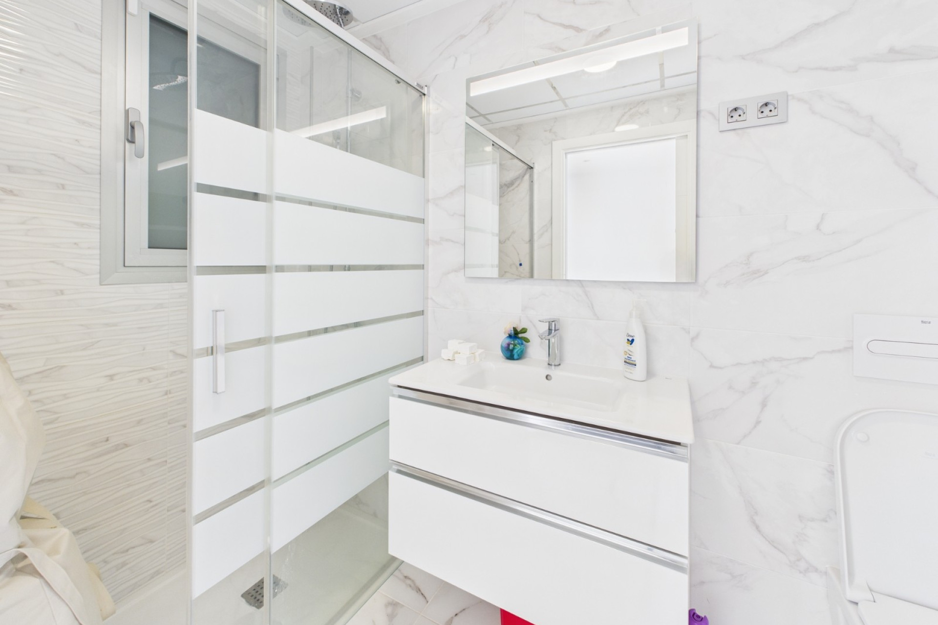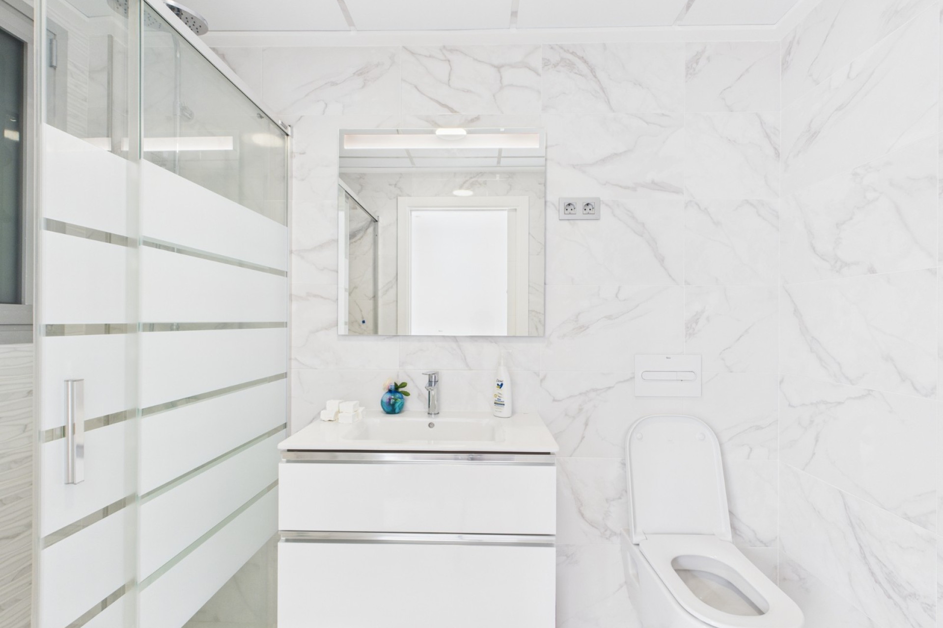 This stylish property offers three bedrooms, two bathrooms and an additional guest WC, designed for both comfort and practicality. Large windows bring in natural light, while the open layout connects seamlessly to the private pool and garden, creating an ideal setting for relaxation and entertaining.
